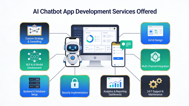 AI chatbot app development services involve creating intelligent conversational applications that can communicate with users in natural language through text or voice. These chatbots use AI, machine learning (ML), natural language processing (NLP), and deep learning to understand queries, learn from past interactions, and provide accurate responses.