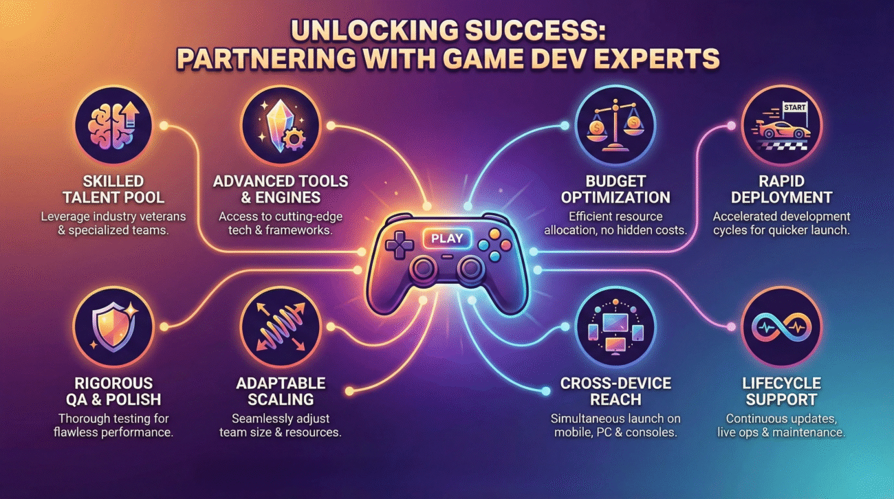 With professional design, smooth gameplay, advanced features, proper testing, and strong monetization, your game has a significantly higher chance of performing well in the competitive gaming market. A development company brings industry experience, creative insights, and technical mastery needed to make your game stand out.