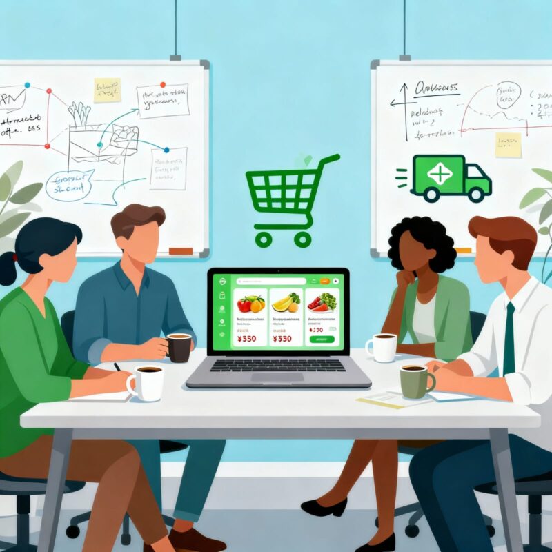 In this setup, the app acts as a platform for several vendors to list their groceries. The app company doesn’t own stock but earns commissions from sellers. Customers can browse from multiple stores, compare prices, and choose based on ratings or distance.