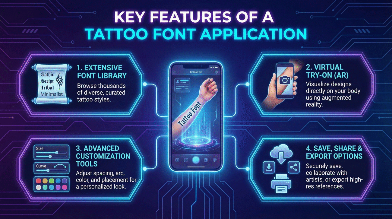 A tattoo font application is a digital tool that allows users to explore, design, and visualize text-based tattoo ideas using a wide range of fonts and customization options. Whether someone wants a name tattoo, a meaningful quote, roman numerals, calligraphy letters, or gothic-style designs, these applications provide instant previews in multiple styles. They bridge the gap between imagination and final tattoo outcome by helping artists and clients collaborate and refine designs before inking.