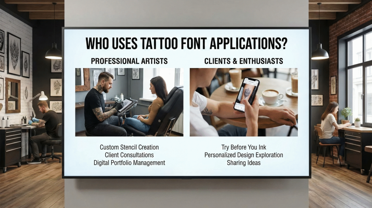 Tattoo enthusiasts are the primary users of tattoo font applications because these apps allow them to experiment freely with different lettering styles before committing to a permanent tattoo. People planning name tattoos, inspirational quotes, initials, dates, or symbolic words can test hundreds of fonts instantly, adjust sizes, and preview placements on virtual skin. This helps them overcome doubts, refine their creative ideas, and confidently finalize a design that perfectly matches their personality. For first-time tattoo clients especially, these apps reduce hesitation and offer a safe, pressure-free space to explore their aesthetic preferences.