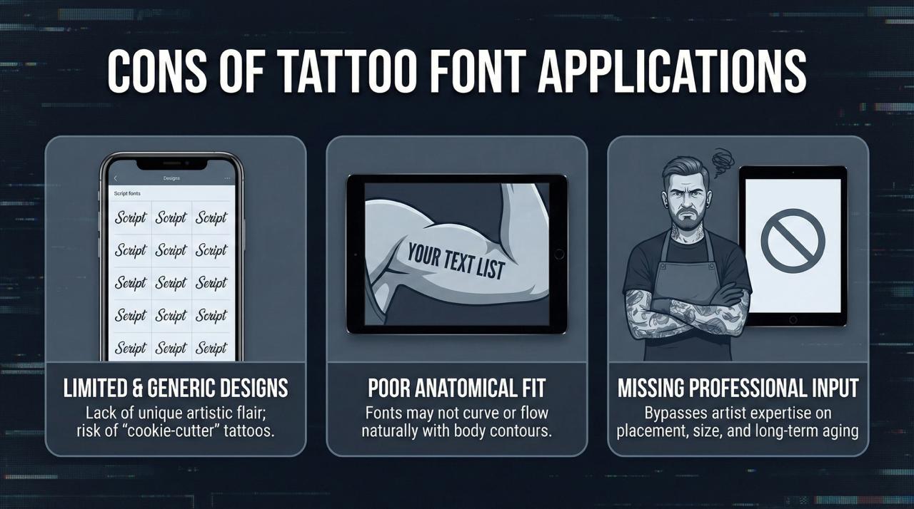 If users depend entirely on digital tools, they may stop exploring unique hand-drawn styles or personalized custom fonts created by tattoo artists. While apps offer convenience, they may limit artistic exploration if users always select premade fonts instead of experimenting with original, custom art.